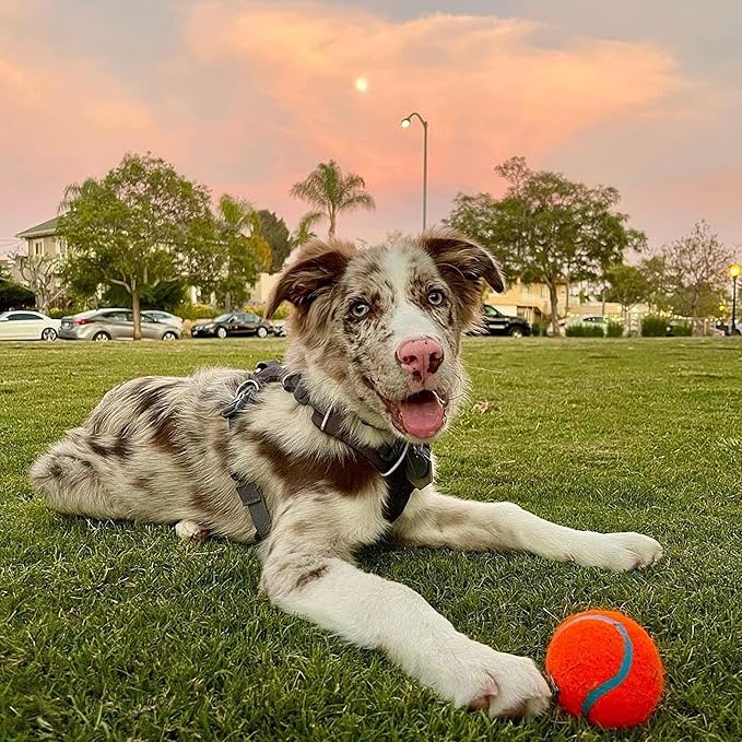 • Go Fetch Anywhere: This dog balls rubber core floats makes it float on water for water fetch and extra bouncy on dry land to encourage jumping. Bright orange and blue colors makes this dog ball easy to spot. Size Medium fits all Medium Chuckit launchers