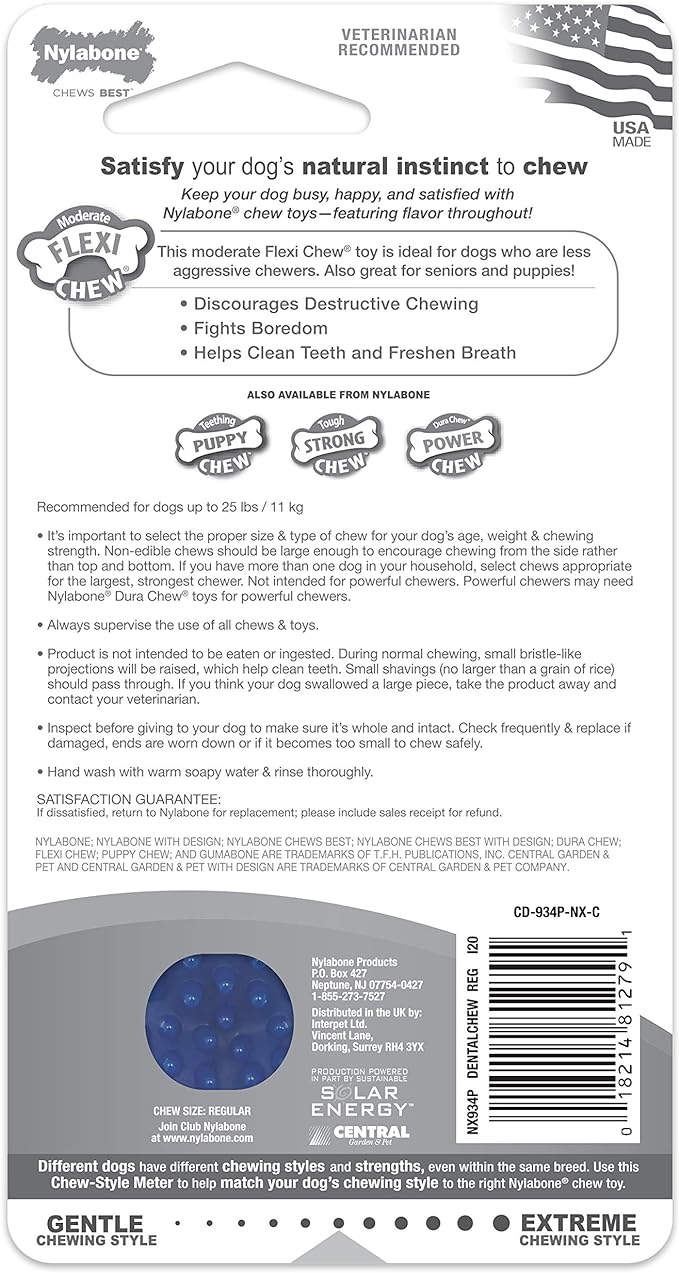 Nylabone Flexi Chew Moderate Textured Dental Chew Toy for Dogs, Chicken Flavor, Small/Regular (1 Count)