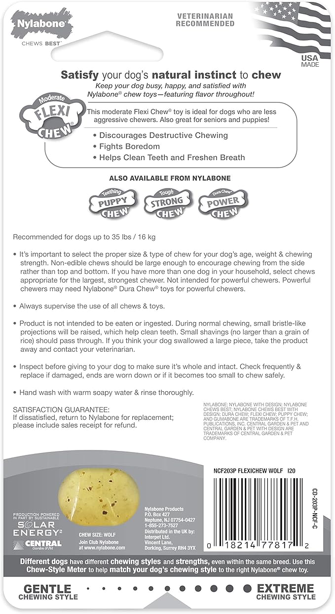 Nylabone Flex Chew Moderate Dog Chew Toy Bone, Chicken Flavor, Medium/Wolf (1 Count)