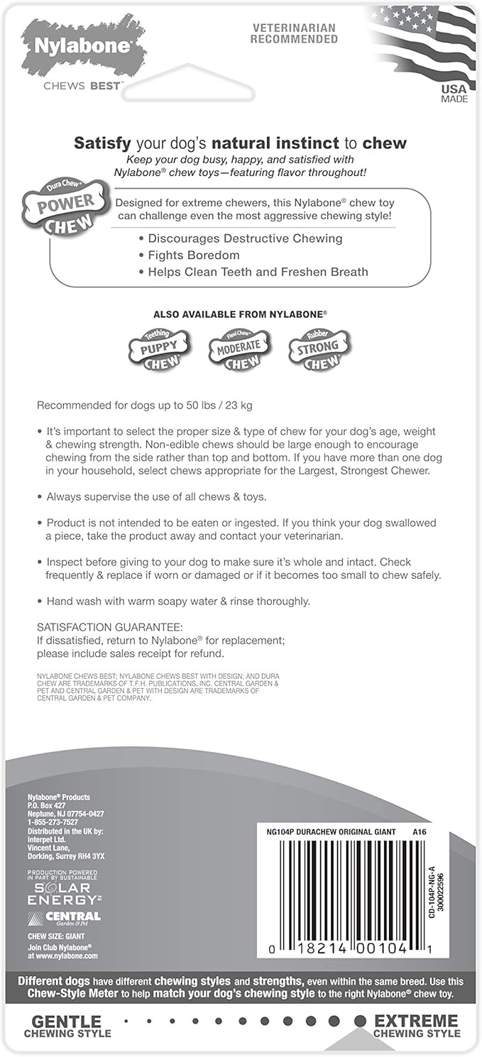 Nylabone Power Chew Classic Bone Chew Toy for Dogs, Durable Dog Toys for Aggressive Chewers, Original Flavor, Large/Giant - Up to 50 lbs. (1 Count)
