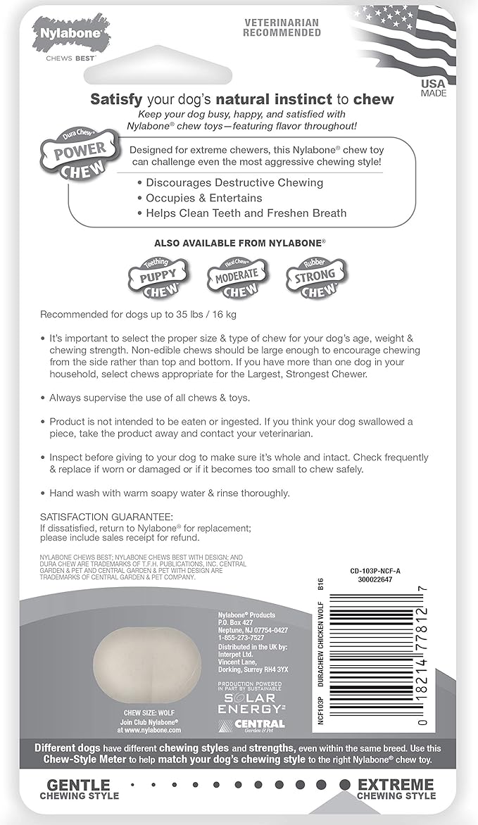 Nylabone Power Chew Classic Bone Chew Toy for Dogs, Durable Dog Toys for Aggressive Chewers, Chicken Flavor, Medium/Wolf - Up to 35 lbs. (1 Count)