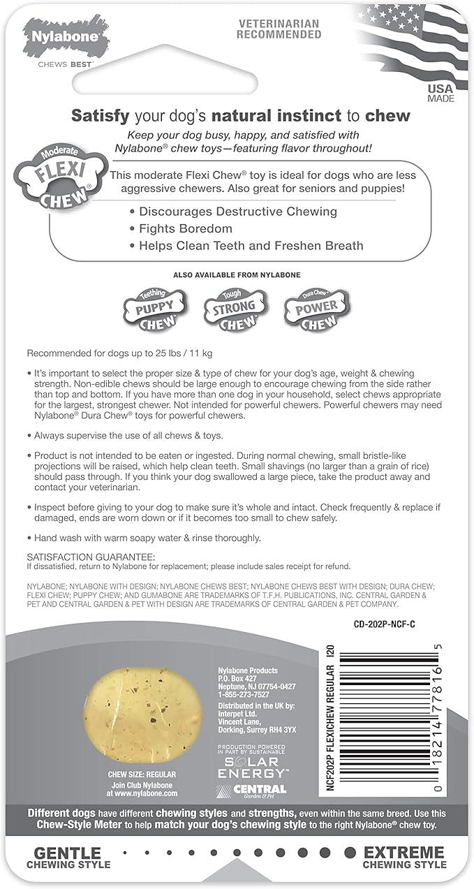 Nylabone Flex Chew Moderate Dog Chew Toy Bone, Chicken Flavor, Small/Regular (1 Count)