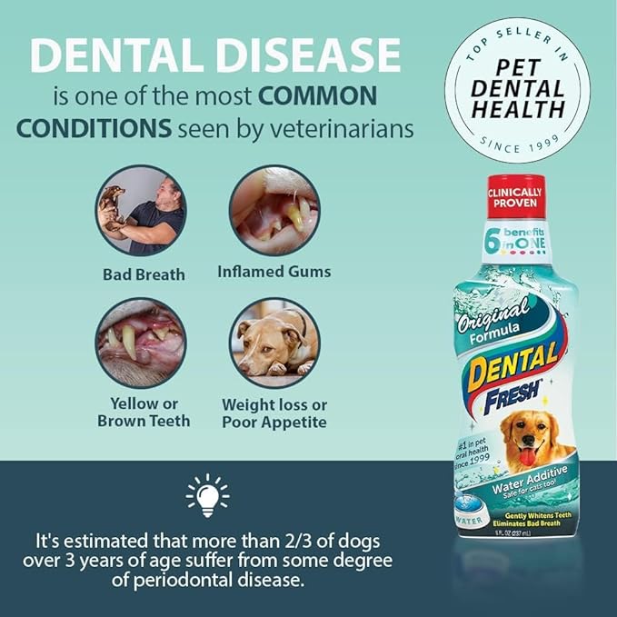 Dental Fresh Water Additive for Dogs, Original Formula, 17oz – Dog Breath Freshener and Teeth Cleaning for Dental Care– Add to Water