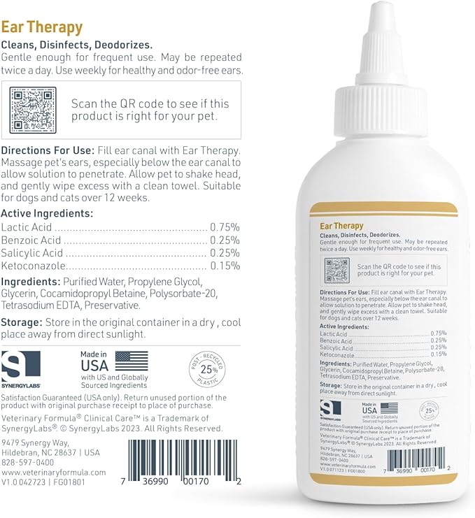 • FOR YOUR PETS – Clinical Care Ear Therapy is great for dogs, cats, and small animals over 12 weeks for daily care and to maintain the ear health of your pet.