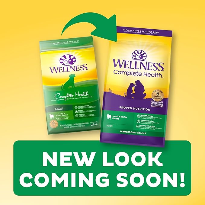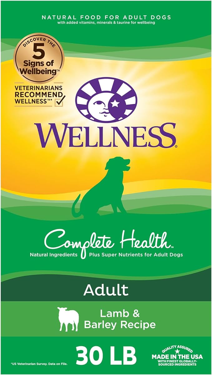 Wellness Complete Health Dry Dog Food with Grains, Made in USA with Real Meat & Natural Ingredients, All Breeds, Adult Dogs (Lamb & Barley, 30-lb) – With Nutrients for Immune, Skin, & Coat Support, 30.00 Pound (Pack of 1)