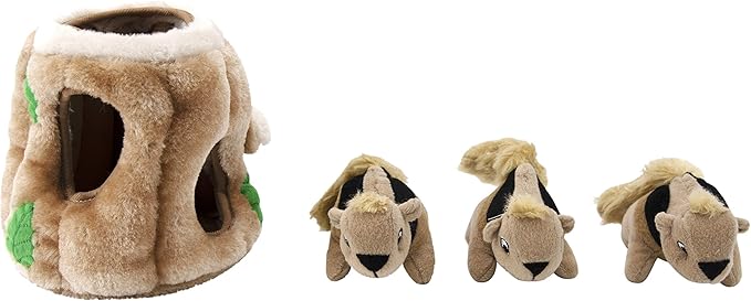 • HIDE & SQUEAK FUN: The Hide A Squirrel dog puzzle is an easy way to get your furry friends engaged for hours of fun! Just fill the tree trunk with 3 stuffed squeaky squirrels, toss it, and let your dog's natural hunting instincts kick in!