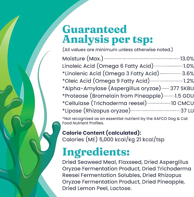 • Nutrient Rich Powder - Utilizing seaweed, earth's original Superfood, this SeaMeal combines red, green and brown seaweed species (such as kelp) to provide amazing wellness benefits for dogs and cats.