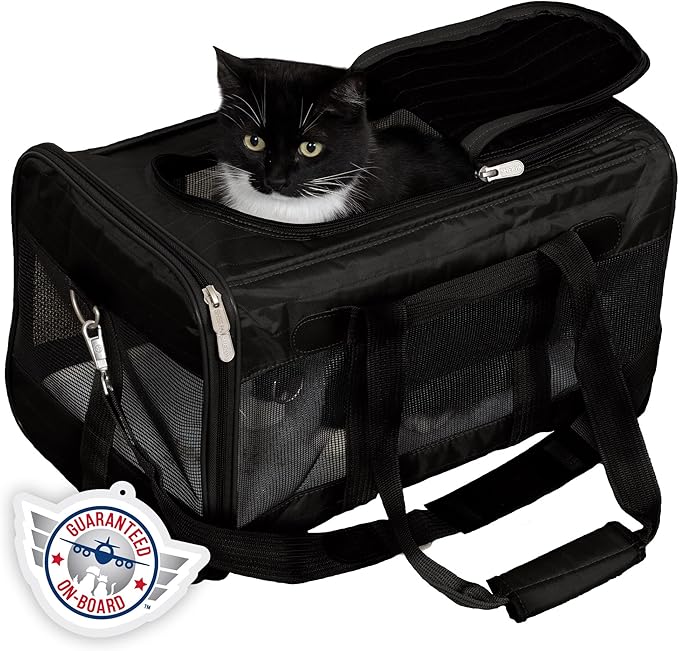 • FITS ON OR UNDER SEATS: Our patented spring wire frame allows the rear end of the carrier to be pushed down several inches, easily fitting in cars and conforming to under-seat requirements of domestic rail travel