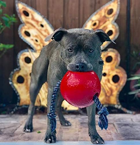 Jolly Pets Romp-n-Roll Rope and Ball Dog Toy, 6 Inches/Medium, Red (606 RD)