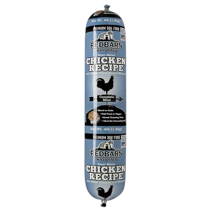 Redbarn 4lb Chicken Recipe Rolled Food | Natural Ingredients with Added Vitamins & Minerals - Shelf Stable Food, Topper or Training Reward | Made in USA (Pack of 1)