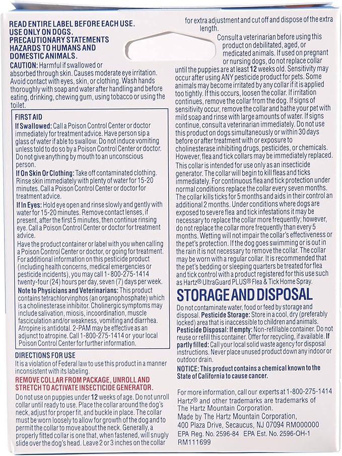 • Kills and repels fleas and ticks for 7 months. Can be worn simultaneously with your dog's regular collar