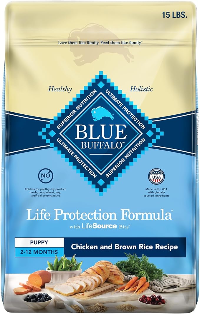 Blue Buffalo Life Protection Formula Puppy Dry Dog Food with DHA and ARA, Made with Natural Ingredients, Chicken & Brown Rice Recipe, 15-lb. Bag