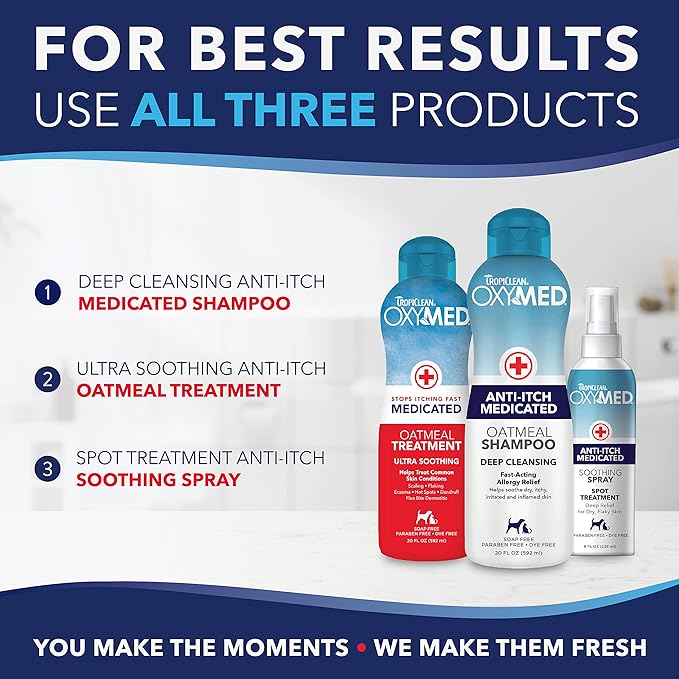 TropiClean Oxymed Medicated Cat & Dog Shampoo for Itchy Skin | Skin Soothing Oatmeal Shampoo for Dogs & Cats | 20 oz