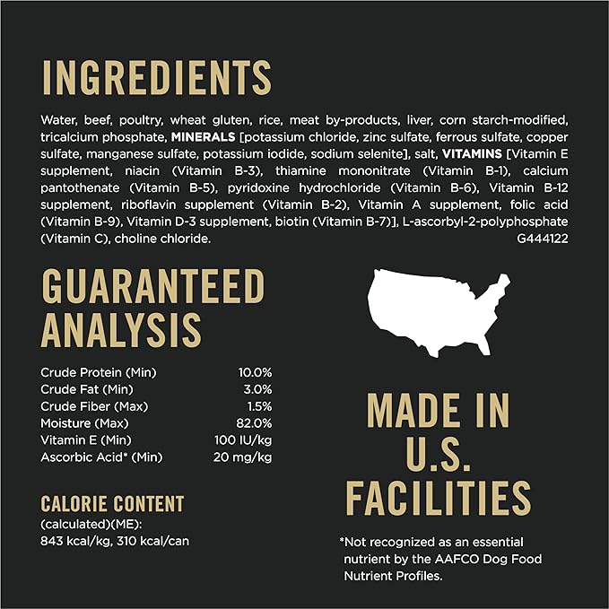 • Senior wet dog food proudly manufactured at Purina-owned, U.S. facilities, and you can try it risk free