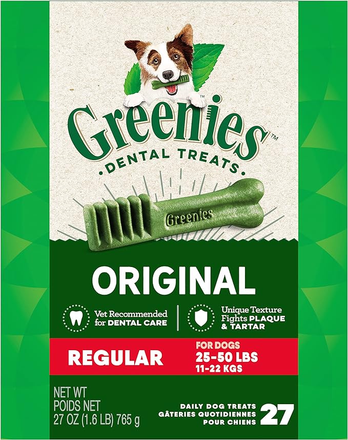 Greenies Original Regular Natural Dog Dental Care Chews Oral Health Dog Treats, 27 oz. Pack (27 Treats)