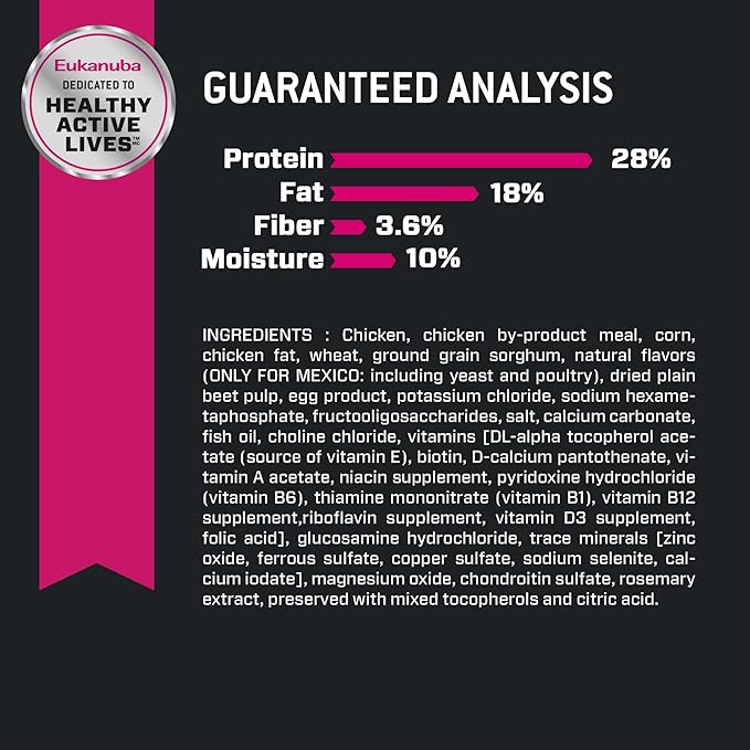 • MUSCLE & JOINT SUPPORT: A combination of animal protein, glucosamine, and chondroitin sulfate promotes lean muscle development and joint health in active small breed dogs