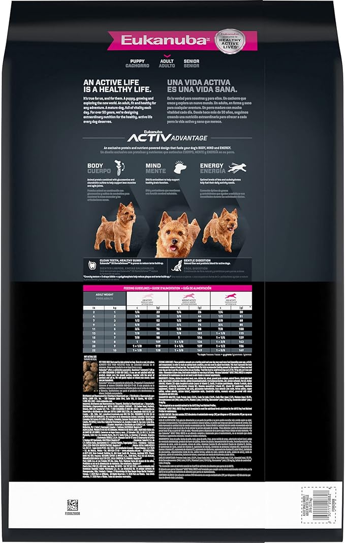 • FOR SMALL BREED ADULT DOGS: Eukanuba Adult Small Breed Dry Dog Food is complete and balanced nutrition for small breed dogs over 12 months old and weighing up to 23 lb