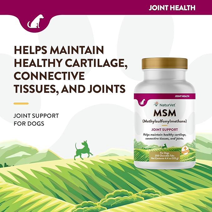 NaturVet Methylsulfonylmethane Joint Support Dog Supplement – Helps Support Healthy Cartilage, Tissue and Joints in Dogs – Includes MSM, Sulfur-Rich Compounds – 250 Ct.