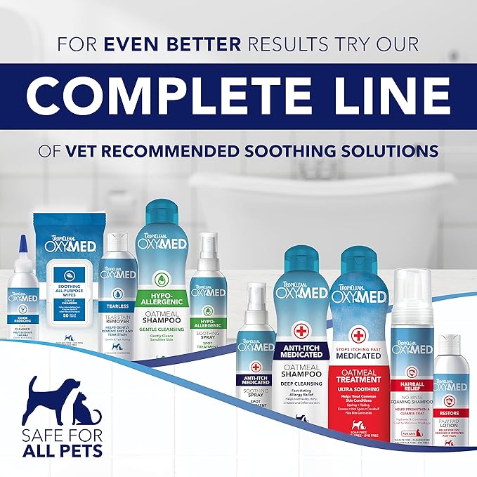 • Oxymed - For total care use with Oxymed’s ear cleaner, soothing lotion, tear stain remover and wipes.