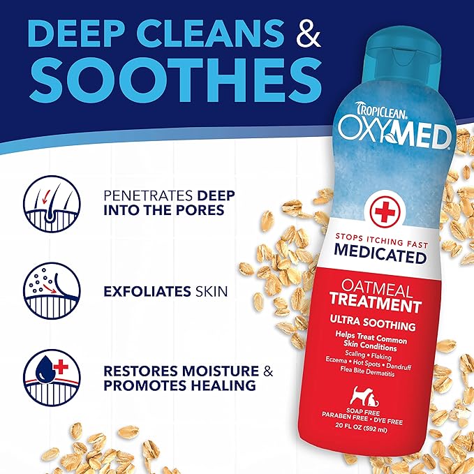 TropiClean Oxymed Medicated Cat & Dog Conditioner For Itchy Skin | Skin Soothing Oatmeal Conditioner For Dogs & Cats | 20 oz