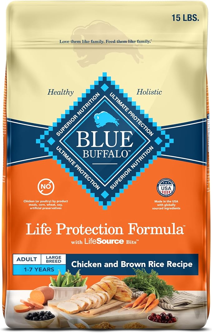 • Contains: One (1) 15-lb. bag of BLUE Life Protection Formula Large Breed Dry Dog Food, Chicken and Brown Rice Recipe