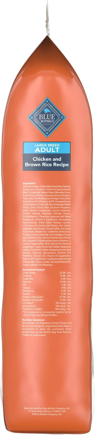 • PACKAGING MAY VARY: Contains one (1) 30 lb. Bag of BLUE Life Protection Formula Large Breed Adult Dry Dog Food, Chicken and Brown Rice