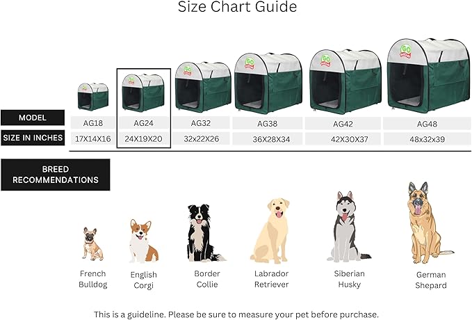Go Pet Club 24" Rounded Top Soft Collapsible Dog Crate, Portable Pet Carrier, Thick Padded Pet Travel Crate for Indoor & Outdoor, Soft Sided Pet Foldable Kennel Cage with Durable Mesh Windows, Green