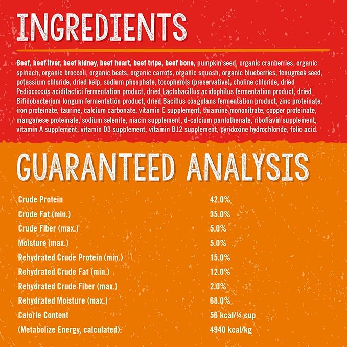 • Supports Whole Body Health: Fortified with added vitamins and minerals, our Freeze-Dried Raw formula helps improve your dog’s entire well-being, with fiber and probiotics for digestive support and taurine for heart health