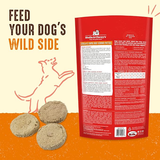 Stella & Chewy's Freeze Dried Raw Dinner Patties – Grain Free Dog Food, Protein Rich Stella’s Super Beef Recipe – 14 oz Bag