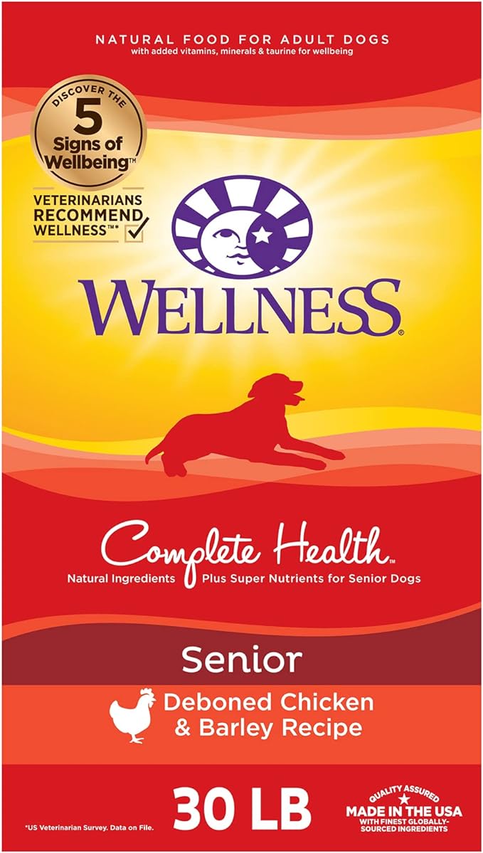 Wellness Complete Health Senior Dry Dog Food with Grains, Natural Ingredients, Made in USA with Real Meat, All Breeds (Chicken & Barley, 30-Pound Bag)