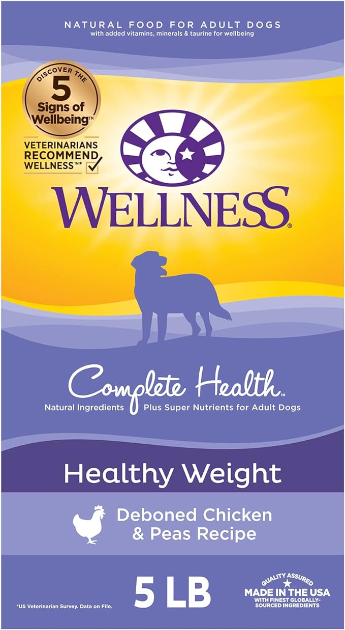 Wellness Complete Health Dry Dog Food with Grains, Natural Ingredients, Made in USA with Real Meat, All Breeds, For Adult Dogs (Healthy Weight - Chicken & Potatoes, 5-Pound Bag)