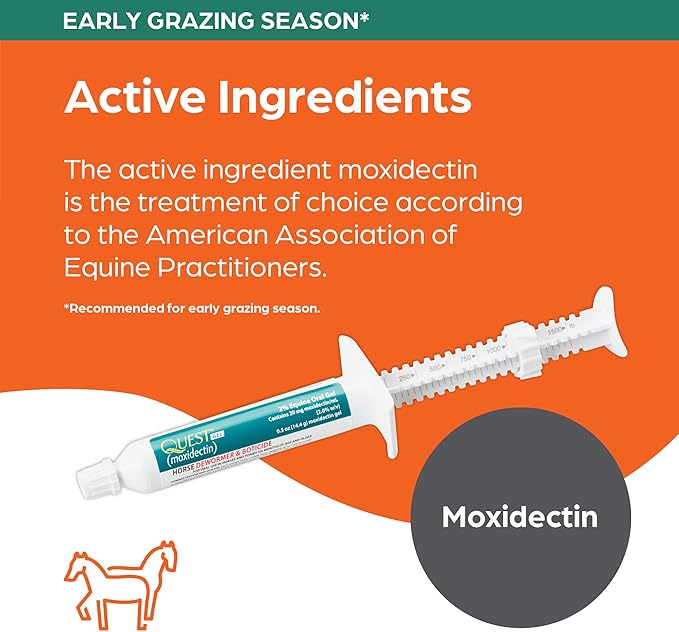 Quest Gel Moxidectin Horse Dewormer, Early Grazing Season recommended for Horses and Ponies 6 months and older, 0.5oz Sure-Dial Syringe