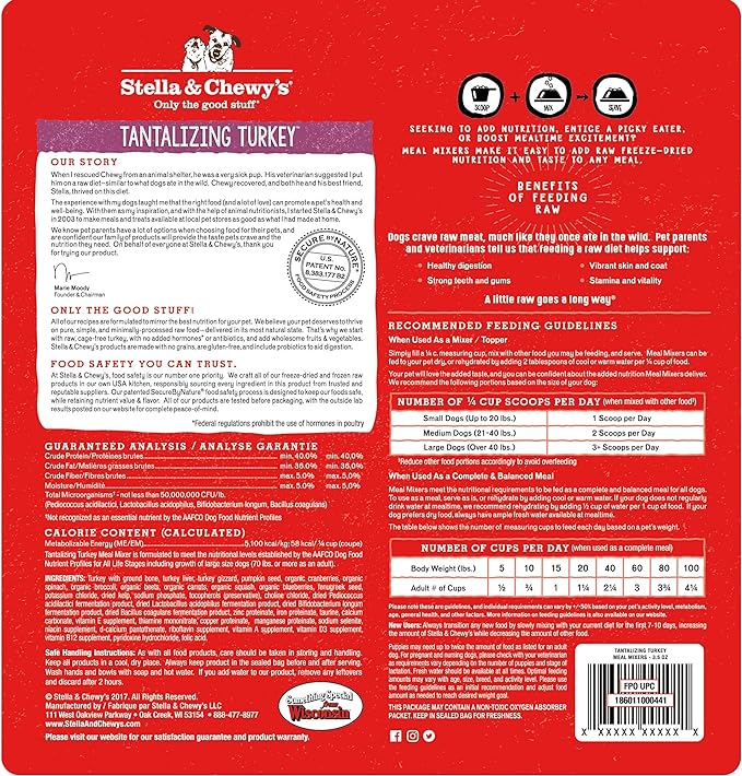 Stella & Chewy's Freeze Dried Raw Tantalizing Turkey Meal Mixer – Dog Food Topper for Small & Large Breeds – Grain Free, Protein Rich Recipe – 18 oz Bag