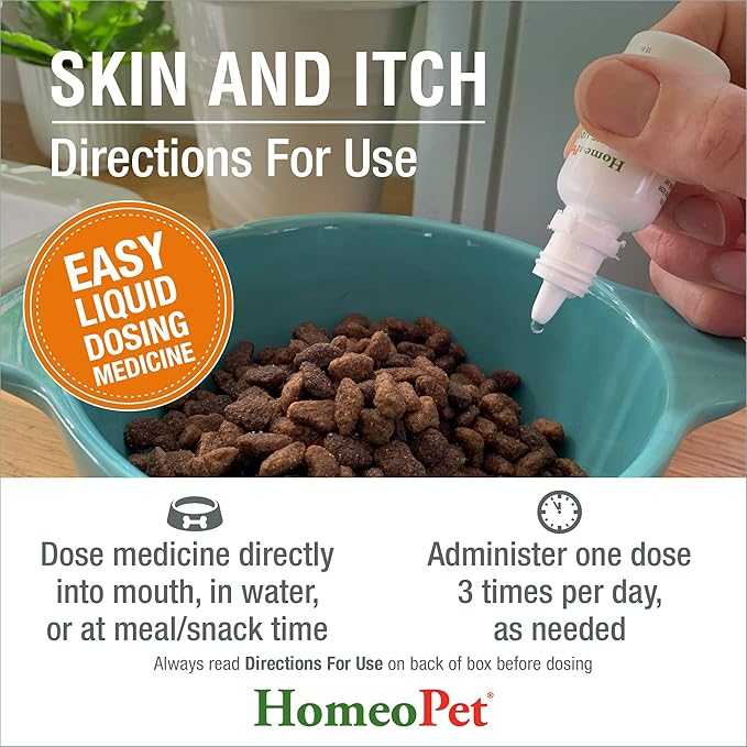 • PET SUPPLIES FOR ITCHY SKIN: HomeoPet Skin and Itch can help support healthy skin for dogs, cats, and other pets. Our pet medicine is a safe, gentle ally in the fight against scratching brought on by seasonal allergies.