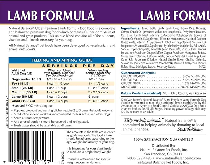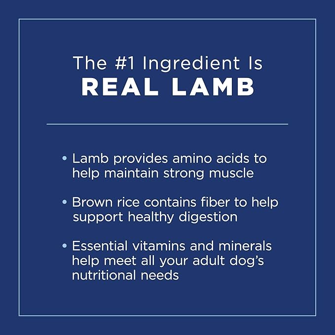 • LAMB IS THE FIRST INGREDIENT providing essential protein and amino acids to help maintain strong muscles; Brown rice is included as a healthy source of fiber to help support digestive health; Contains (12) 13-Ounce Cans