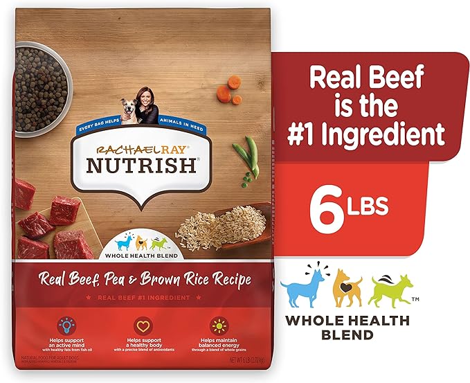 Rachael Ray Nutrish Premium Natural Dry Dog Food with Added Vitamins, Minerals & Taurine, Real Beef, Pea, & Brown Rice Recipe, 6 Pounds (Packaging May Vary)