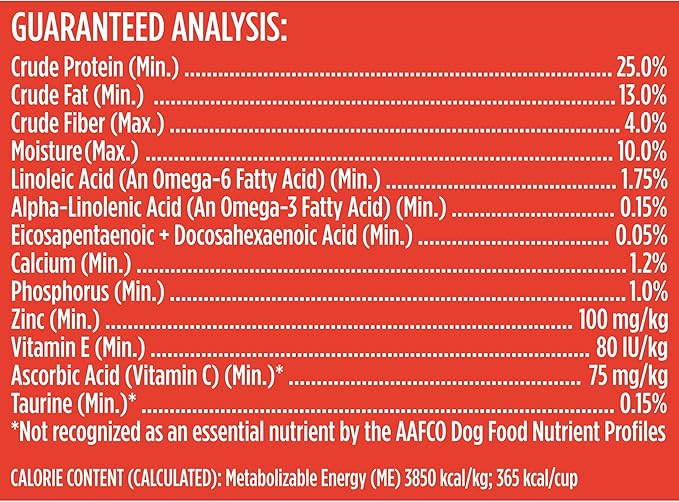 • Calorie Content: Metabolizable Energy (ME) 3850 kcal/kg; 365 kcal/cup