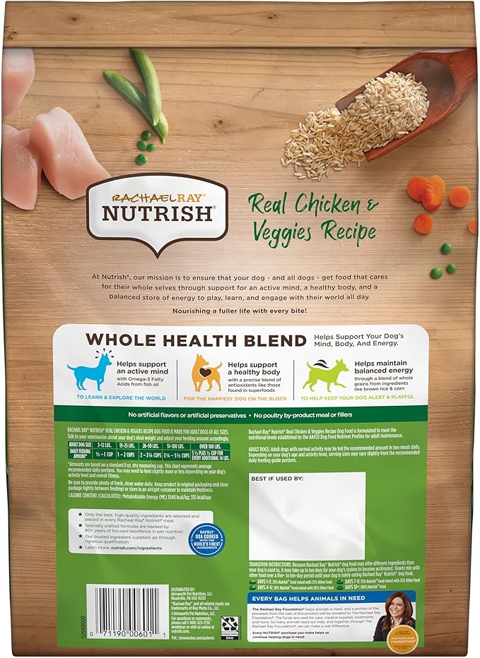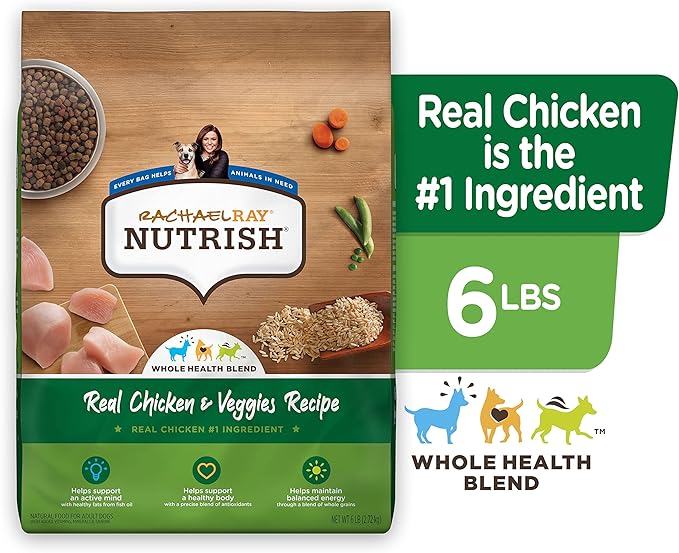 • Contains one (1) 6-pound bags of Rachael Ray Nutrish Real Chicken and Veggies Recipe