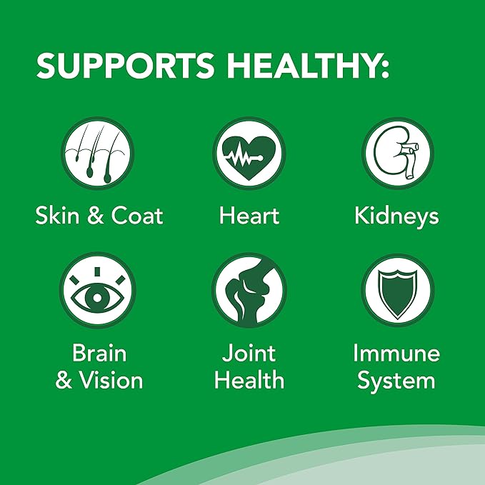 • Supports Several Functions: In addition to supporting skin and coat health, omega-3s help support heart, kidney (renal), brain/vision and immune system function
