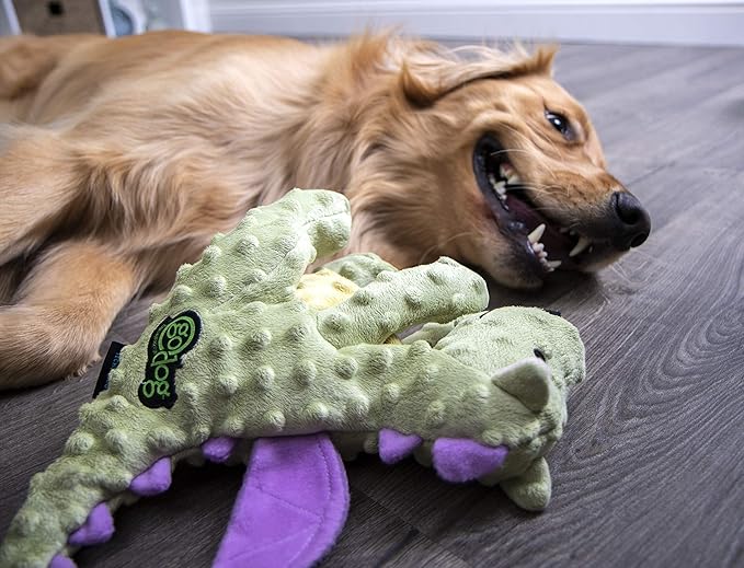 • SOFT & DURABLE: goDog's Dragons are cute and cuddly squeaky toys made with soft, bubble-textured plush that dogs love to play and cuddle with; featuring reinforced seams and chew-resistant lining for fun, long-lasting solo and interactive play