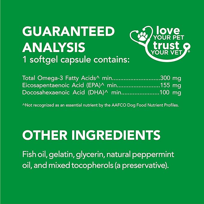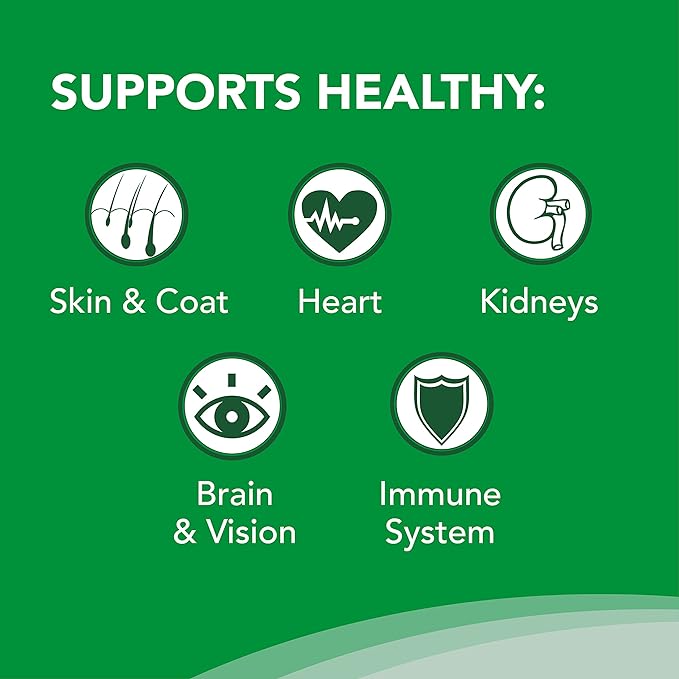 • Supports Several Functions: In addition to supporting skin and coat health, omega-3s help support heart, kidney (renal), brain/vision and immune system function
