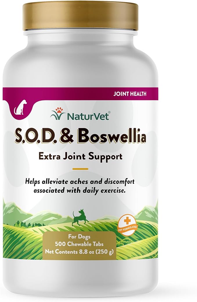 NaturVet S.O.D. & Boswellia Extra Joint Support Dog Supplement – Dog Hip Supplement – Helps Alleviate Aches, Pain – for Dog Flexibility, Healthy Joint Function – 500 Ct. Chewable Tablets