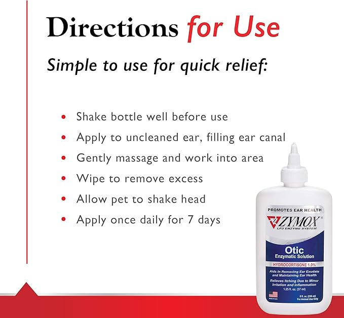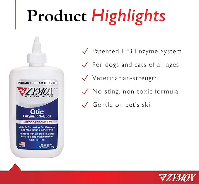 Zymox Otic Enzymatic Solution for Dogs and Cats to Soothe Ear Infections with 1% Hydrocortisone for Itch Relief, 8oz