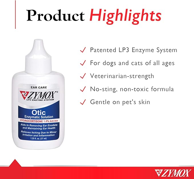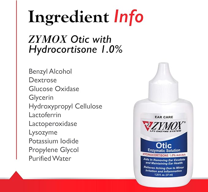 Zymox Otic Enzymatic Solution for Dogs and Cats to Soothe Ear Infections with 1% Hydrocortisone for Itch Relief, 1.25oz