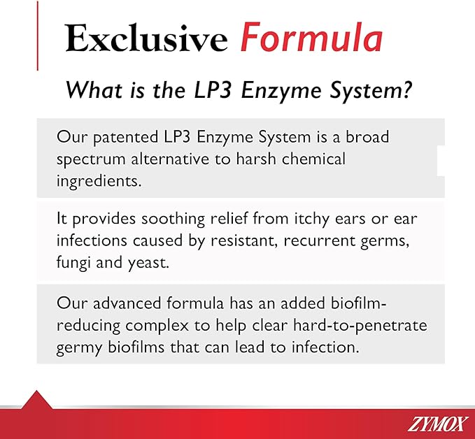 • Patented LP3 Enzyme System helps clear ear secretions and promotes healthy ears