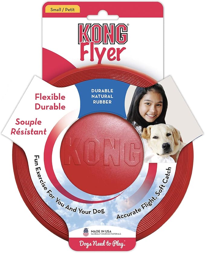 KONG Flyer - Durable Dog Toy for Outdoor Playtime - Natural Rubber Flying Disc, Dog Toy for Fetch - Safer Disc for Healthy Activity - for Small Dogs