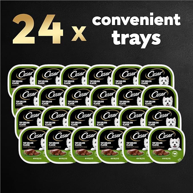 • Contains one (1) 3.5 oz. easy peel tray of CESAR Soft Wet Dog Food Classic Loaf in Sauce Top Sirloin Flavor