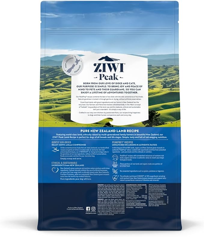 ZIWI Peak Air-Dried Dog Food – All Natural, High Protein, Grain Free and Limited Ingredient with Superfoods (Lamb, 2.2 lb)