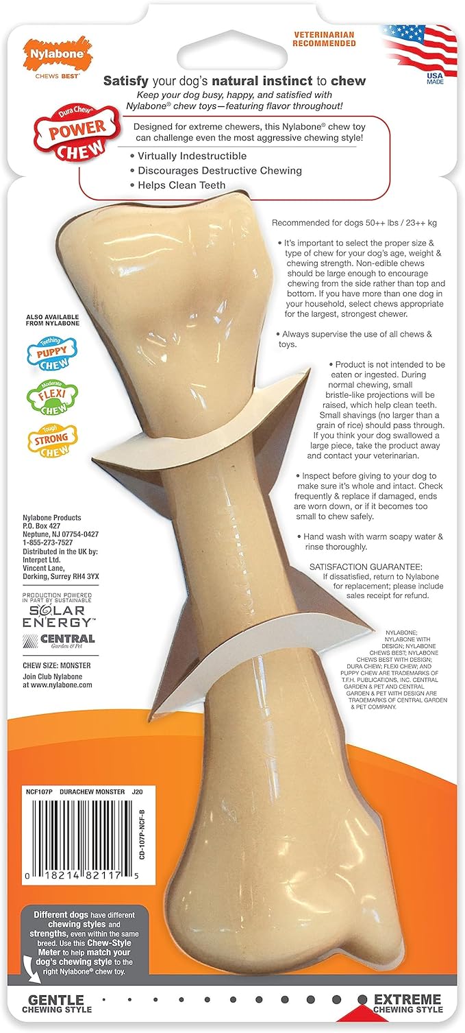 Nylabone Power Chew Monster Bone Big Dog Chew Toy, Dog Toys for Aggressive Chewers, Chicken Flavor, XX-Large/Monster (1 Count)