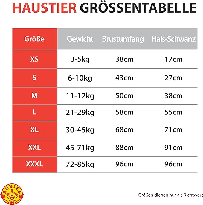 • READ THE RUBIE’S PET SIZE CHART and WATCH THE SIZING INSTRUCTION VIDEO, do not select size based on breed